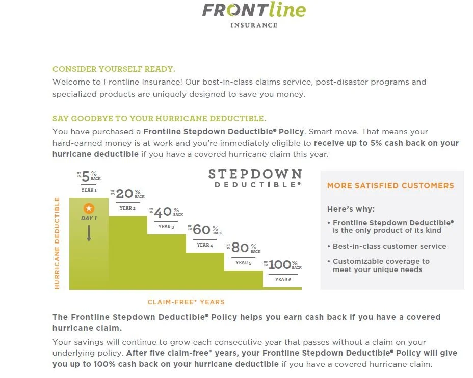We don’t necessarily endorse or recommend Frontline over any other insurance company, but the image to the left is an example of a stepdown deductible.