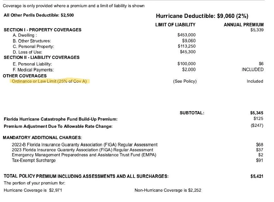 What to do: Inquire: “My property is located in a hurricane zone with frequent code updates—what ordinance coverage am I afforded?” And ensure you document code‑upgrade obligations (e.g., re‑roofing wind uplift requirements, upgrading hurricane straps, upgrading electrical panel etc.) in your renewal process.